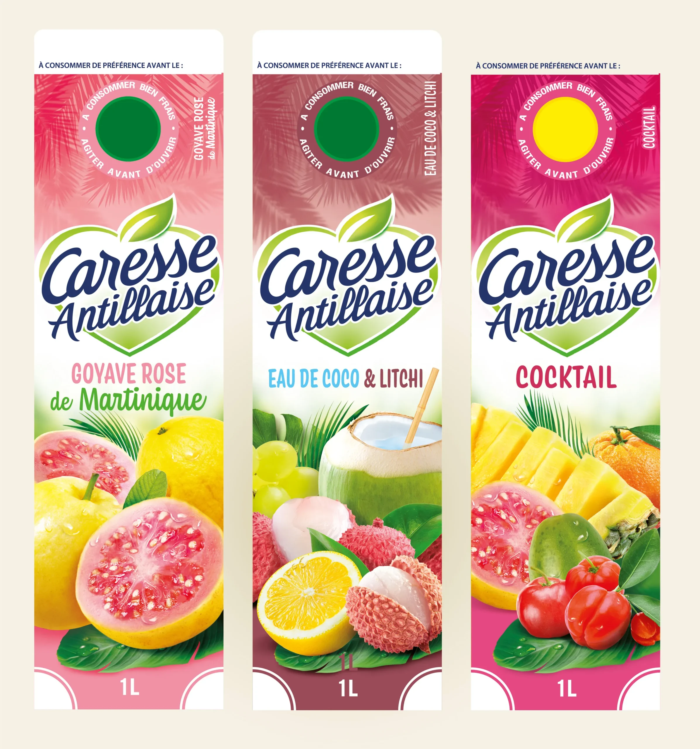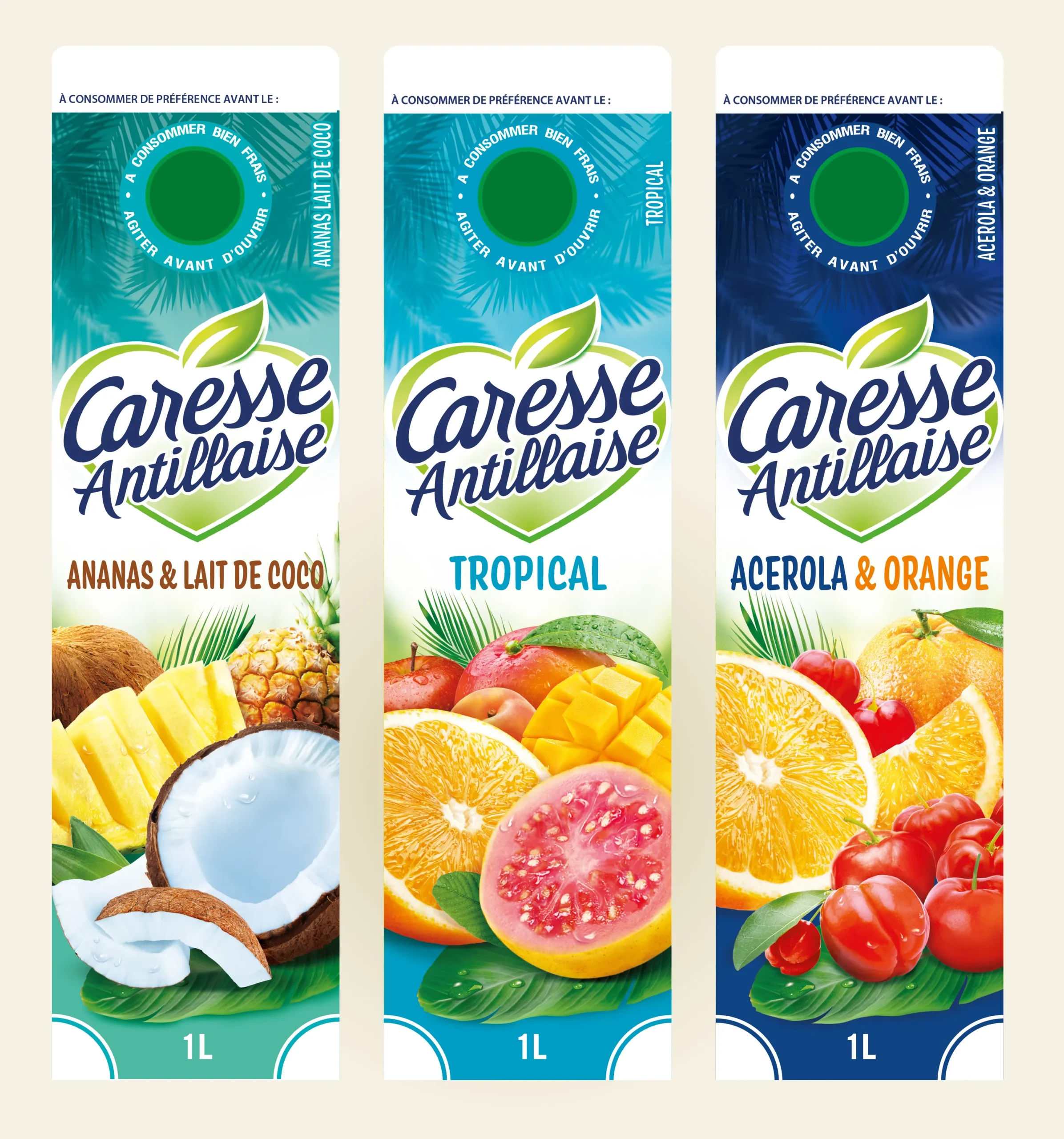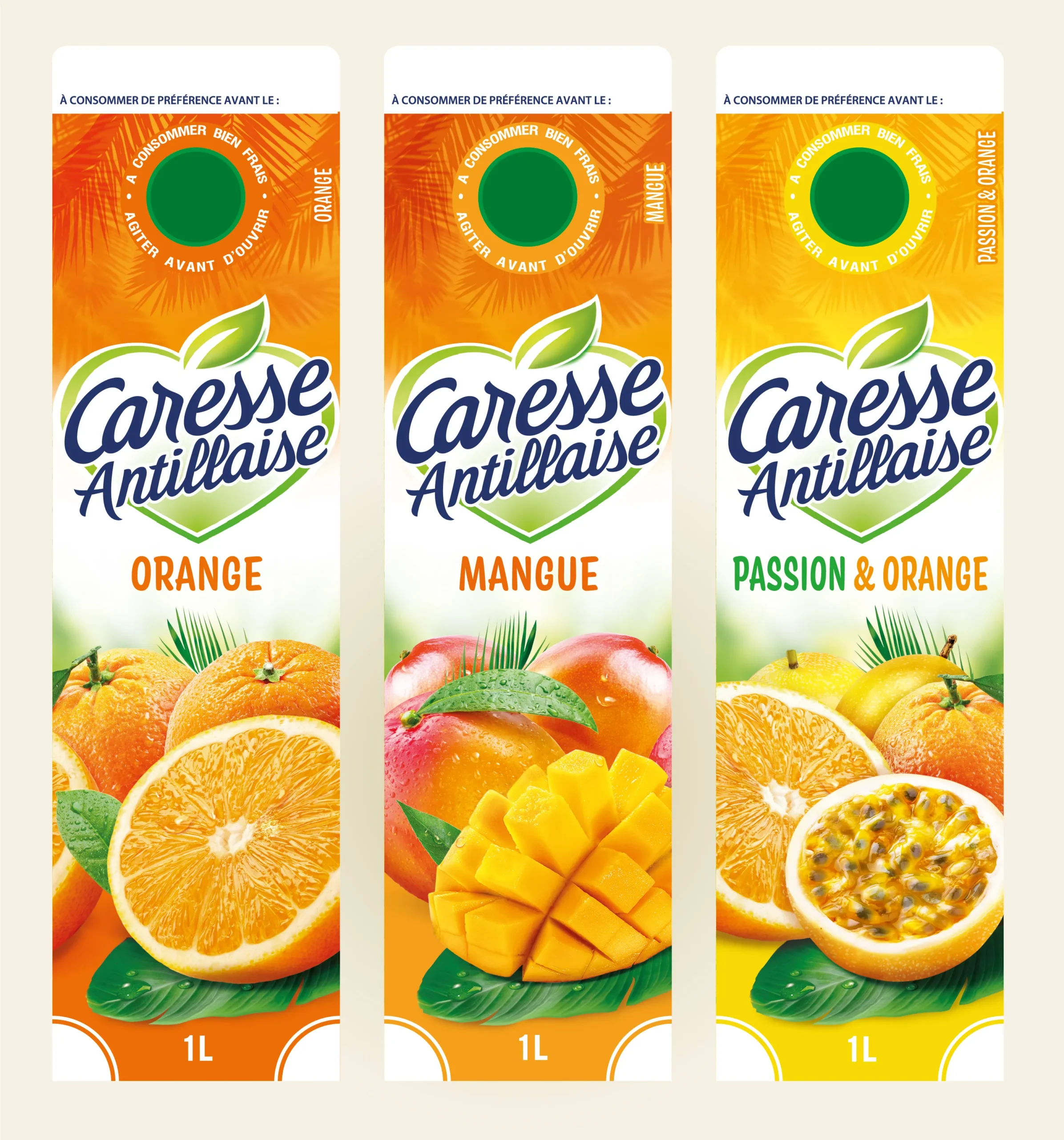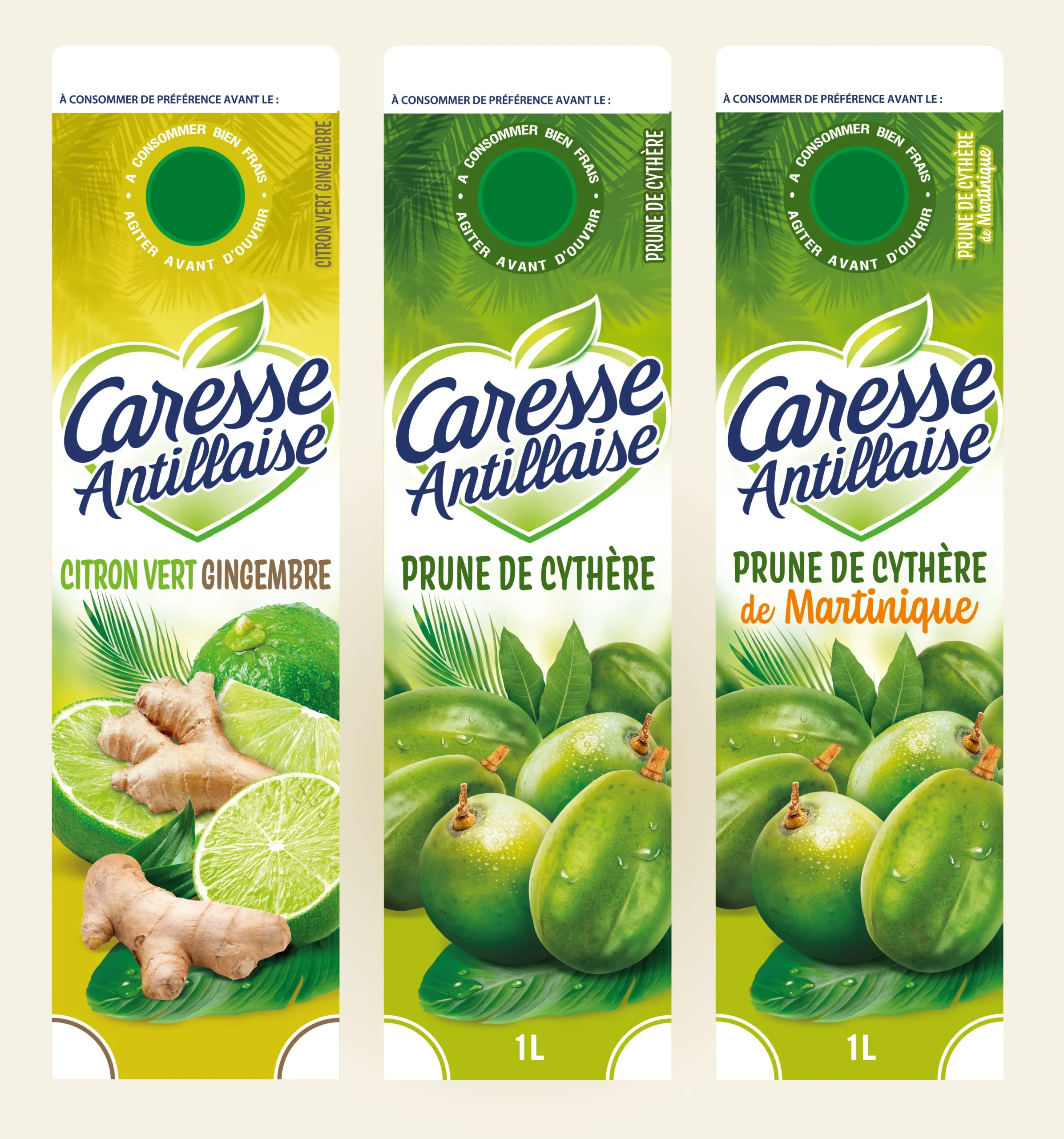 Eclat des fruits emblématiques des Antilles, ambiance baignée de soleil, l’univers visuel de Caresse Antillaise met à l’honneur le patrimoine gustatif et végétal des Antilles. Ce look reconnaissable entre tous se décline en une multitude de recettes de jus, plus savoureuses et colorées les unes que les autres.