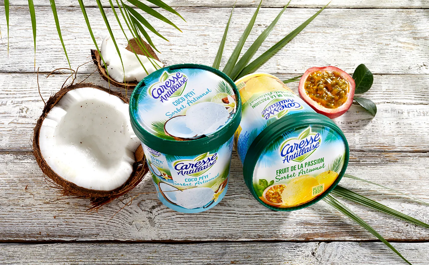 Véritable ambassadrice des fruits antillais sous toutes leurs formes, Caresse Antillaise se décline aussi en compotes gourmandes et sorbets colorés. De véritables best-sellers!